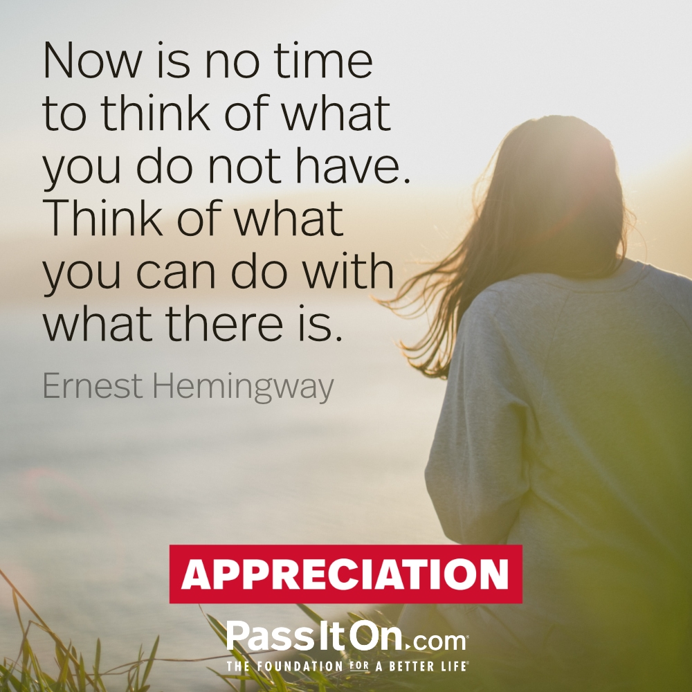 Now is no time to think of what you do not have. Think of what you can do with what there is.  —Ernest Hemingway