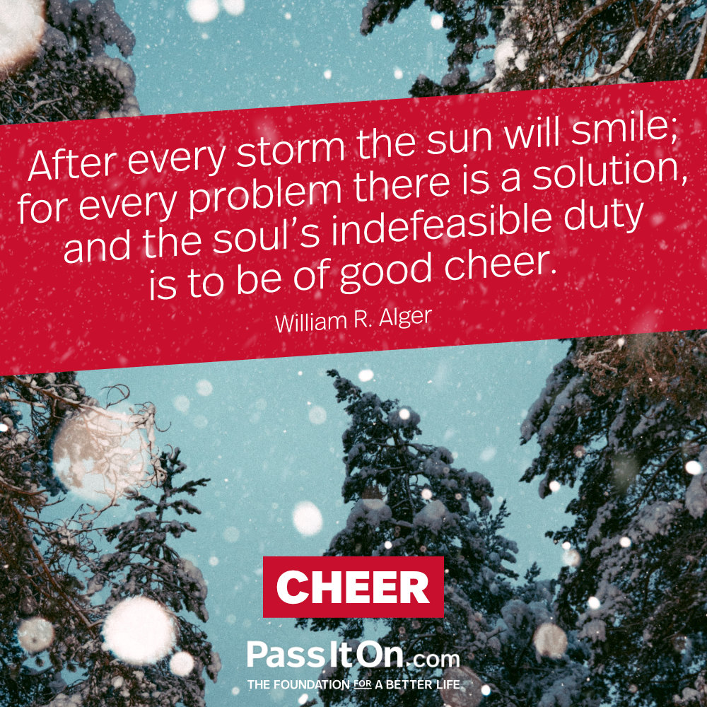 After every storm the sun will smile; for every problem there is a solution, and the soul's indefeasible duty is to be of good cheer. —William R. Alger