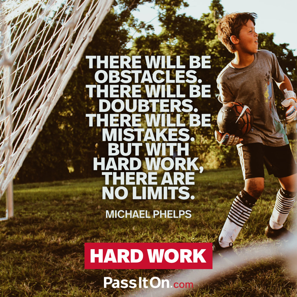 There will be obstacles. There will be doubters. There will be mistakes. But with hard work, there are no limits. —Michael Phelps