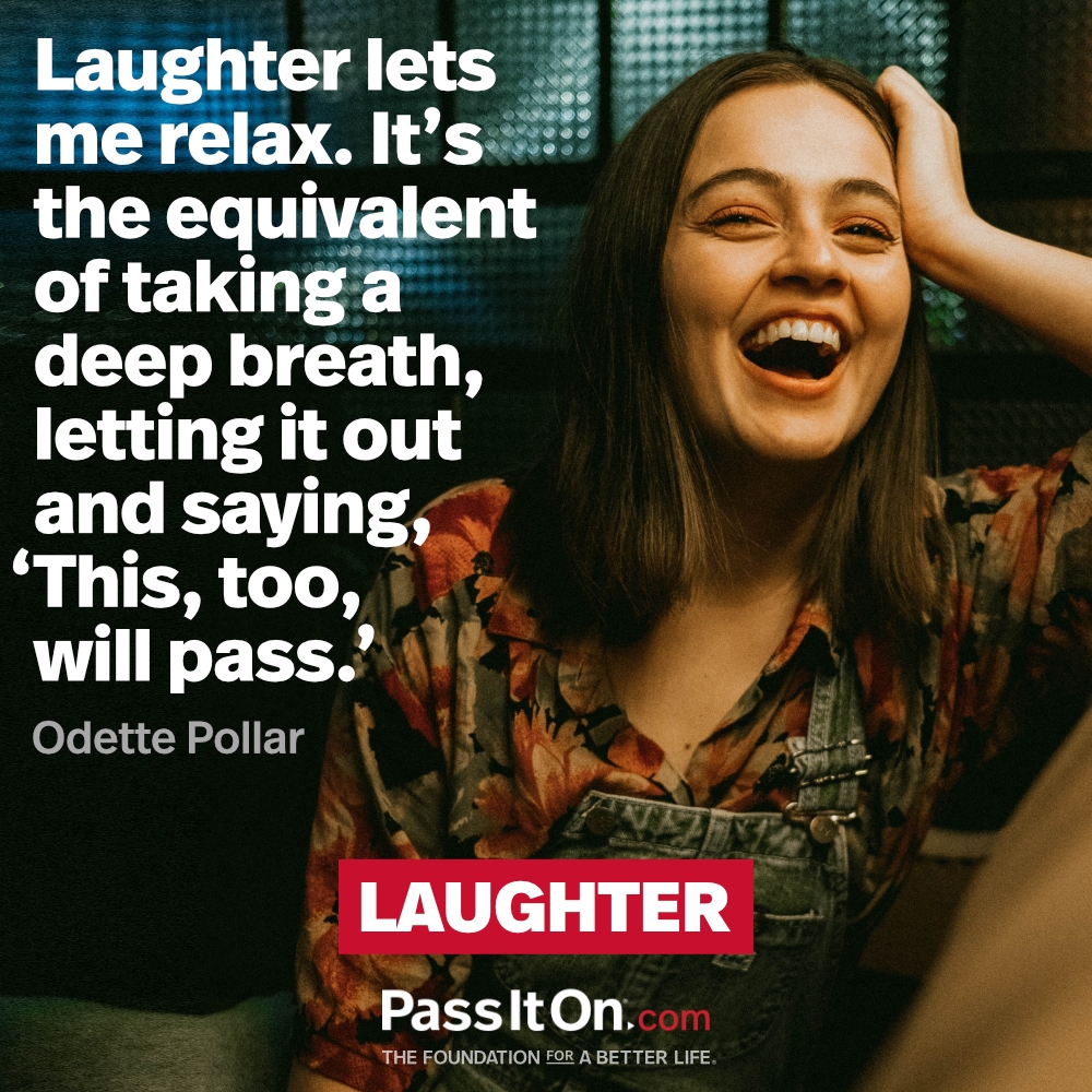 Laughter lets me relax. It’s the equivalent of taking a deep breath, letting it out and saying, ‘This, too, will pass.’ —Odette Pollar