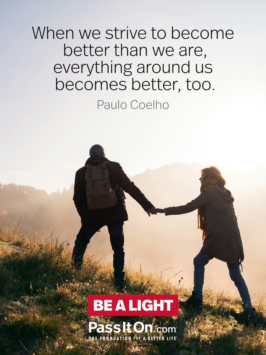When we strive to become better than we are, everything around us becomes better, too. —Paulo Coelho